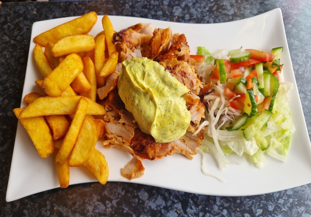 Ich war am einem heißen Wochende da. Trotz der wirklich hohen Temperaturen und dem sicherlich mühsamen Arbeiten an einem solchen Tag, war der Mitarbeiter sehr freundlich. Ich hatte einen Dönerteller zum Mitnehmen bestellt und wurde zu den gewünschten Beilagen befragt. Ich konnte also selbst auswählen, was ich sehr positiv fand. Das Fleisch war frisch, zart und und insgesamt gut und nicht überwürzt. Sehr lecker. Alles wird frisch zubereitet und es gibt eine umfangreiche Speisekarte. Was mir hier besonders aufgefallen ist, das Essen ist mir sehr gut bekommen und lag nicht nach einiger Zeit schwer im Magen, wie ich es anderswo schon leider öfters erlebt habe. Klare Empfehlung. Gerne wieder. PS: Gute Parkmöglichkeiten vor dem Lokal.