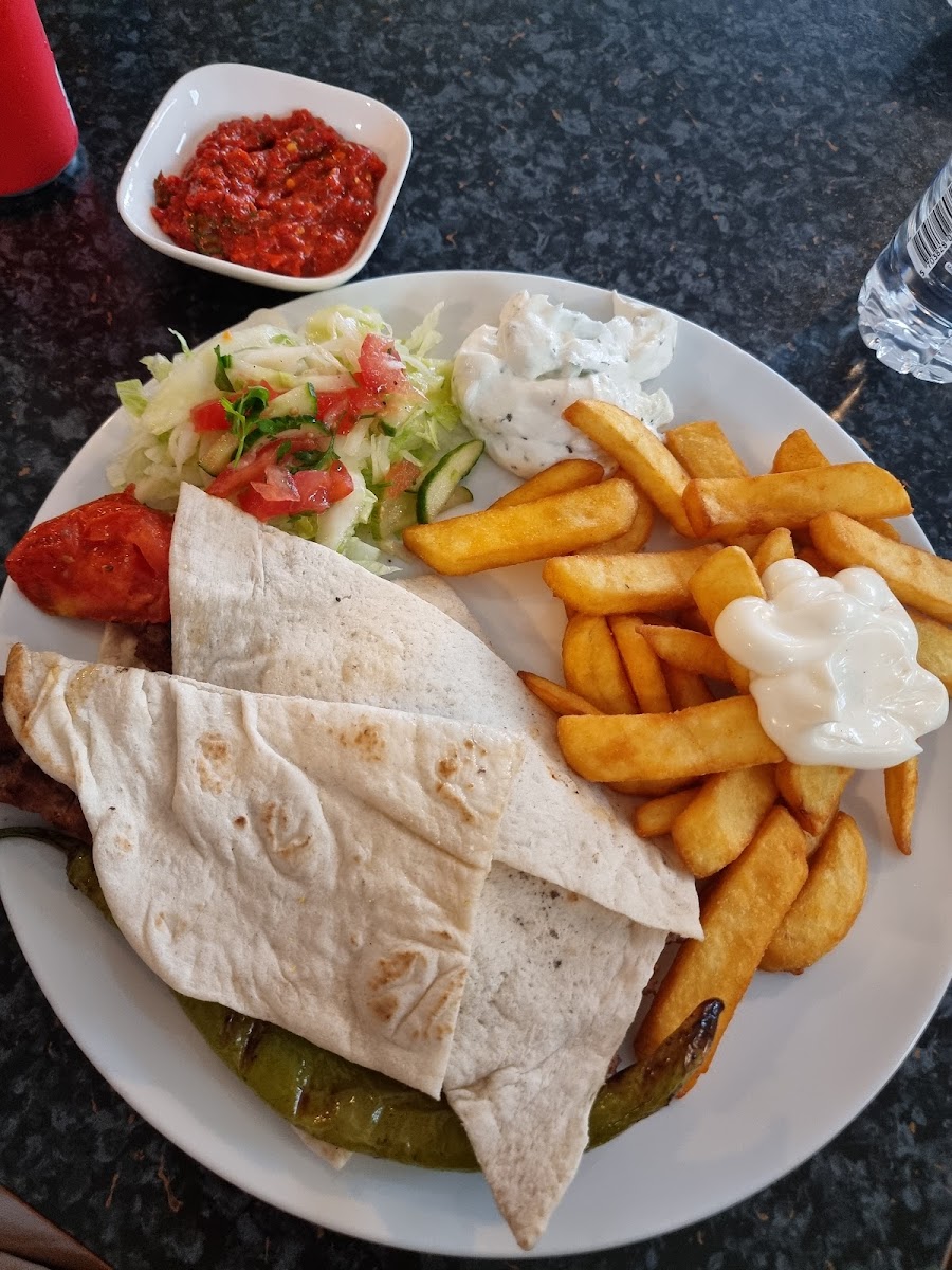 Zum ersten Mal heute hier gegessen. Waren sehr positiv überrascht und zufrieden. Service sehr nett und kundenfreundlich. Bestellung wird schnell aufgenommen und keine lange Wartezeit. Auf Wünsche bei der Zubereitung vom Salat usw wurde eingegangen und so serviert wie bestellt. Unser Essen wurden zum Tisch gebracht. Die Mitarbeiter sind sehr freundlich. Bestellt haben wir - Pide mit Dönerfleisch - Tavuk Sis, Nr 80, mit Reis, Zaziki, Salat - Dönerteller, Pommes, Salat, Cocktailsoße Pide war einfach traumhaft lecker und knuspriger Teig, eines der besten Pide die wir in letzter Zeit gegessen haben, würden wir auch immer wieder hier gerne bestellen. Hähnchenspieß sehr saftig, gut abgeschmeckt, schmeckt sehr gut Die Zaziki ist Top. Der Reis war auch toll, zum ersten Mal so ein Reis gesehen, fand ich sehr interessant, der Farbmix hat was. Dönerteller war auch sehr gut. Fleisch war Perfekt, die Pommes super und die hausgemachte Cocktailsoße 1A, zum erstenmal so eine Soße gegessen, normal kennen wir das von anderen anderes. Die Mengen sind super und die Preise angemessen. Waren sehr zufrieden und können es nur weiterempfehlen!! Gehört nun zu unseren Favoriten und werden uns hier weiter durchtesten!!! Glatte 5 Sterne